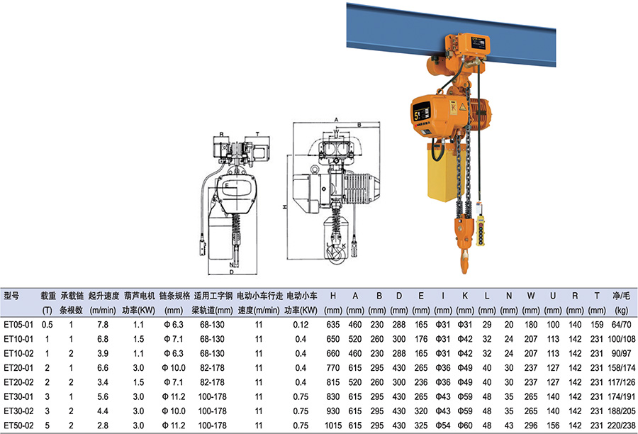 ● 標準起升高度為3米,其它高度可定制。